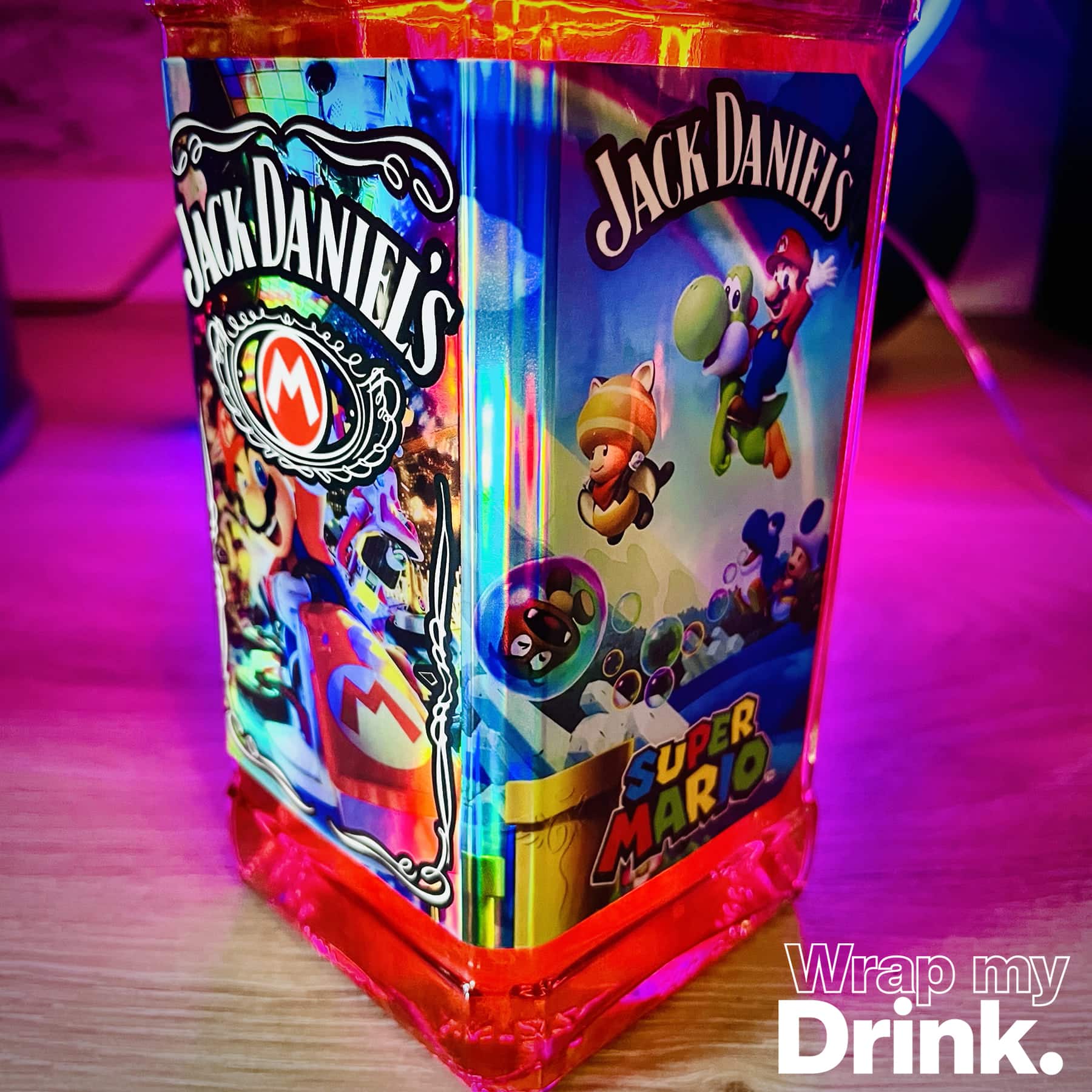 • Exclusive holographic bottle wrap.